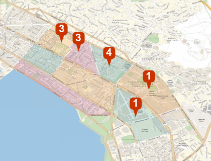 AirBnB Heatmap: This is a heatmap of AirBnB price data in Thessaloniki scraped on the date 11/3/2019. Data was retrieved from Inside Airbnb. This is included to show the relative concentration of housing marketed visitors as well as suggest the property values in the city. White regions signify no data, while blue up to red regions signify increasing prices of Airbnb listings. Zooming in on the map allows one to see the individual placement of Airbnb listings.