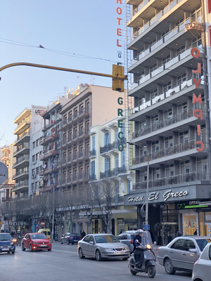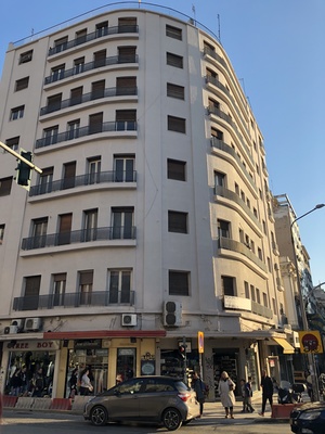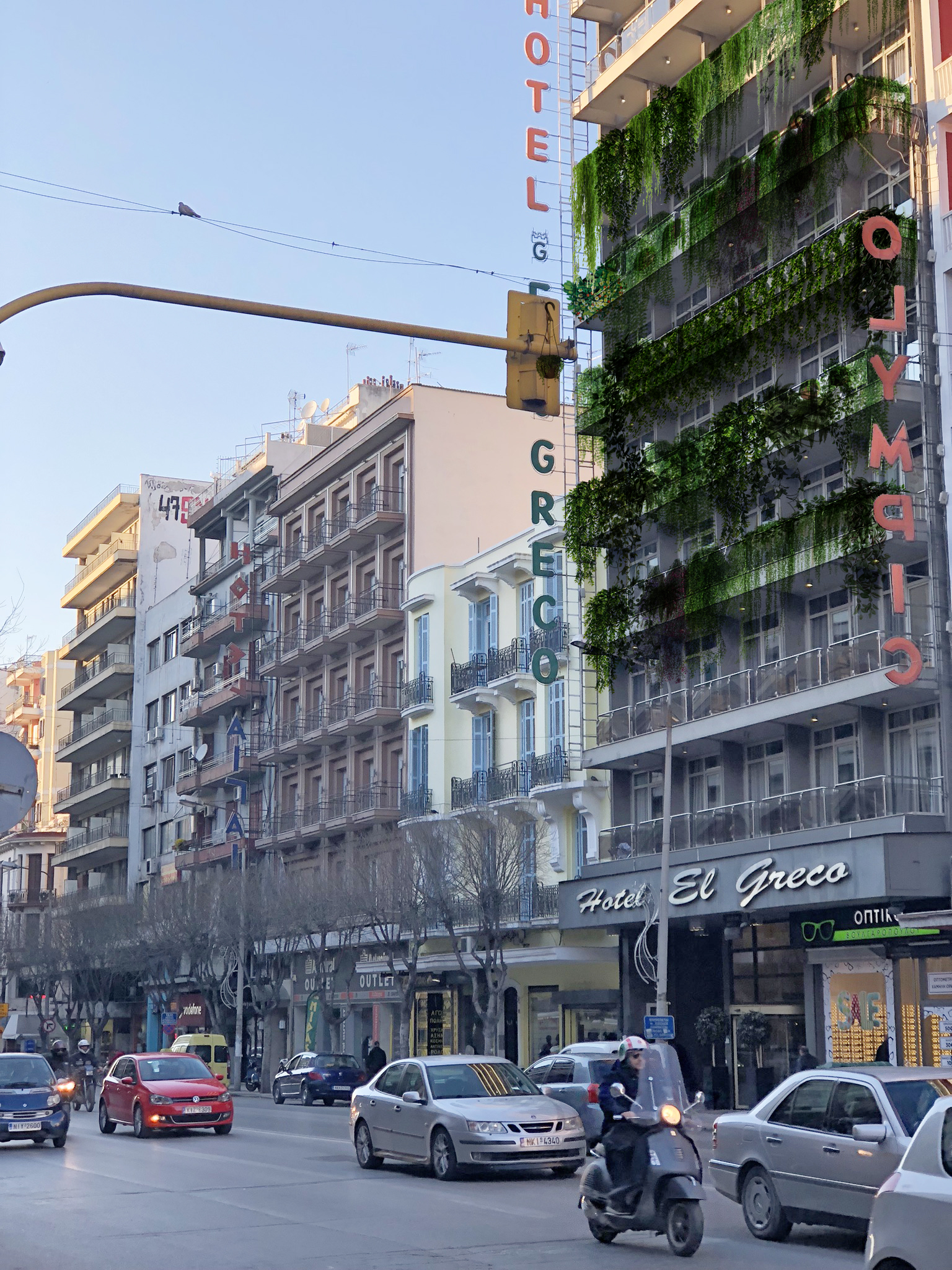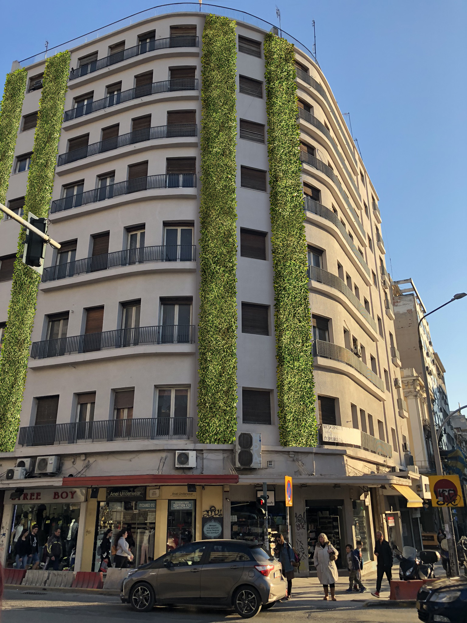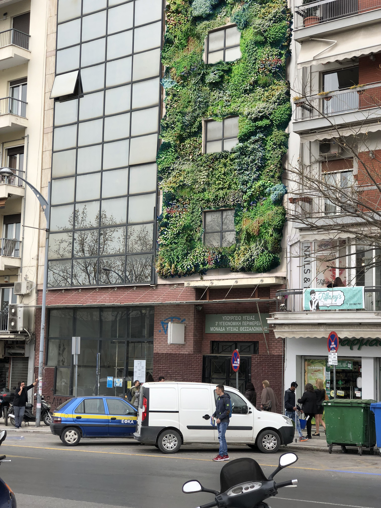 This site was chosen in part because it is most likely a single owner building, making implementation easier. It is also located in a region of little relative green space on Egnatia Street, shown on the data layers above. Vertical gardens could be installed on the balconies of the building. Unstructured would be preferred because they scored better in the questionnaire and are less costly to build and maintain.
